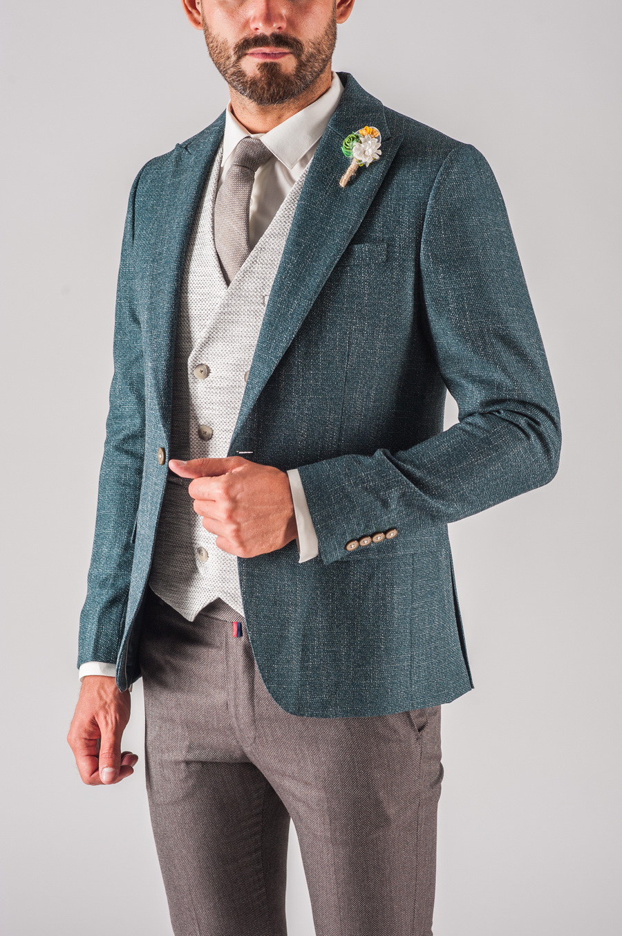 Questo tipo di giacca da uomo fa parte di un abito. Il prodotto è adatto ad un look business e da ufficio, ha pochi dettagli, lo stile tende ad essere minimale. Si riconosce per la perfezione della forma, il colletto aperto con risvolto e l'assenza di profili decorativi e tasche applicate. Più spesso ha 2 bottoni e una chiusura monopetto.