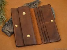 - Portafoglio più lungo o al seno. Questo tipo di borsa ha un orientamento verticale e sembra più un quaderno. Consente di riporre le banconote nel suo scomparto principale senza piegarle a metà o tre volte. Il più lungo utilizza sempre una chiusura magnetica oa pulsante, c'è un portacarte e una gettoniera. Questo tipo di borsellino è pensato esclusivamente per riporre strumenti di pagamento, è adatto per essere indossato nel taschino di una giacca.