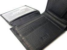 - Hugo Boss... Questa casa di moda produce pieghevoli e pieghevoli in pelle di vitello italiana con logo del marchio sul davanti. I modelli non hanno nomi separati, ma è difficile dubitare della loro qualità.