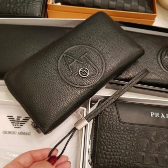 - Armani... I produttori italiani non sono inferiori ai loro omologhi francesi nella qualità del prodotto. Il marchio ha organizer, portafogli classici e "libri" in diversi colori e sfumature. I modelli non hanno nomi separati.
