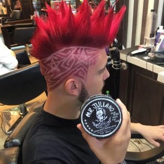 - Irochese. Lo stile è stato scelto da ragazzi amanti della libertà e audaci. La cresta di gallo è stata riparata con gel e lacca per capelli. Questo stile era informale e popolare tra i giovani.
