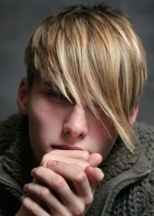 Un sobrio taglio di capelli asimmetrico con frangia laterale conferisce all'immagine un aspetto da teppista e audace. Adatto per adolescenti attivi e giovani coraggiosi con inclinazioni alla leadership... Acconciatura per giovani, sconsigliata agli uomini sopra i 30 anni.