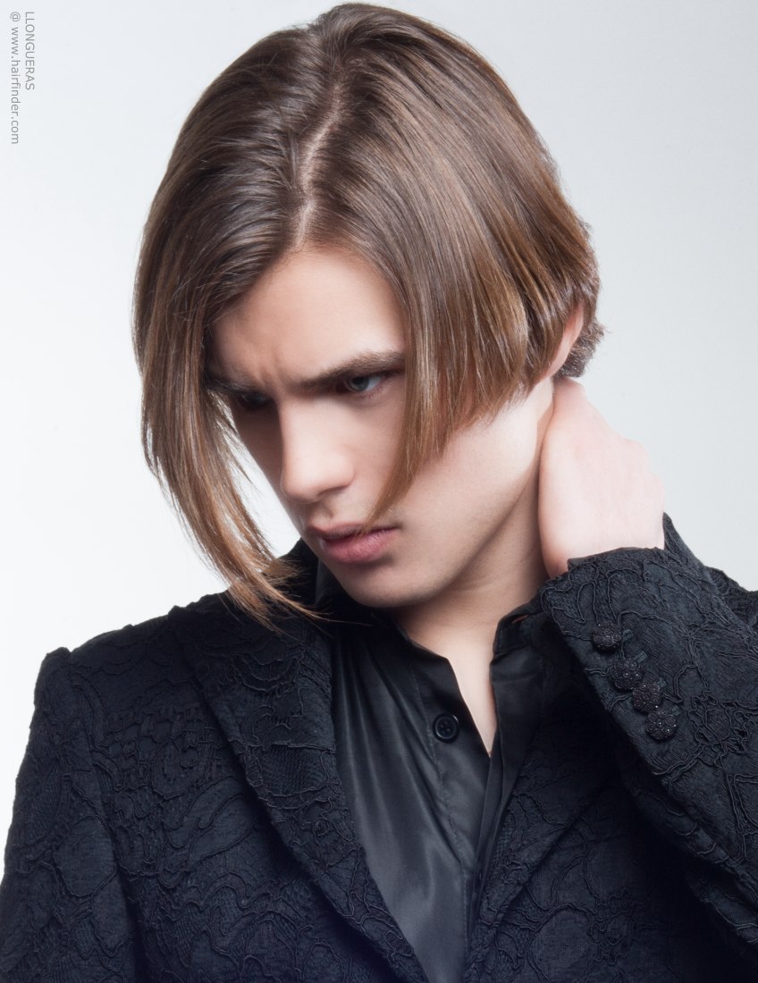 Un taglio di capelli di una lunghezza senza frangia è adatto per capelli di media lunghezza, eseguiti in uno stile classico. La riga è centrale o leggermente spostata di lato. La lunghezza dei capelli, che arrivano fino alle spalle, rende l'immagine di un uomo morbida e romantica. Questa acconciatura è indossata nella vita di tutti i giorni personalità spiritualizzate - poeti, artisti, seminaristi.