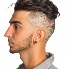 - Taglio di capelli con effetto tatuaggio - tali opzioni comportano schemi di rasatura nella regione temporale.