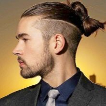 Un taglio di capelli con la testa rasata e le tempie coinvolge non solo ciocche corte, ma anche gli uomini con i capelli lunghi possono sistemare una sorta di tale taglio di capelli sulla loro testa. Un'opzione molto popolare è quella in cui i capelli sulla corona sono raccolti in una coda di cavallo. Questa acconciatura ha i suoi pregi: