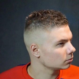 Per gli uomini con ciocche dure, sono adatte varietà di acconciature da riccio o tagli di capelli dell'esercito, le opzioni con un motivo creativo sembrano buone.