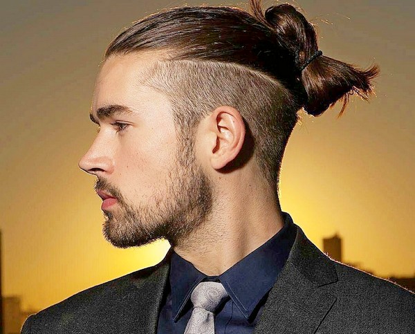 Gli uomini con i capelli folti avranno modelli di tagli di capelli con capelli lunghi e medi in cima - i rappresentanti più eleganti possono intrecciarli o raccoglierli in una coda.