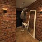 - E, naturalmente, il muro di mattoni diventerà l'elemento base dell'interno del loft. Nello spazio del corridoio, decorato in questo modo, viene utilizzato un minimo di elementi decorativi. La superficie è costituita da una pietra omogenea monocromatica con bordi irregolari e una trama pronunciata. La preferenza è data al grigio scuro o ai toni chiari senza accenti.