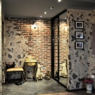 La combinazione di carta da parati e mattoni sembra molto originale all'interno del corridoio. Ti consente di enfatizzare la trama dei materiali di rivestimento, ma allo stesso tempo richiede un'attenzione particolare alla soluzione della tinta. Nelle stanze country e high-tech, la carta da parati è abbinata alla pietra. Per la moderna e la pop art, i toni contrastanti sono rilevanti. Per la combinazione con il mattone, usa uno sfondo semplice. Le tele con motivi e stampe, specialmente quelle di grandi dimensioni, non sono appropriate qui.