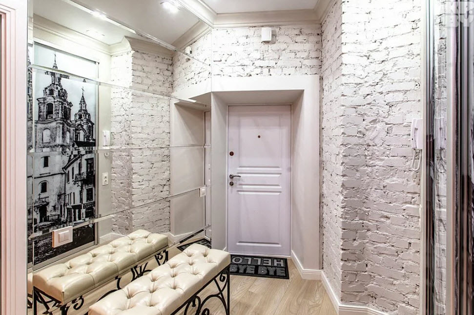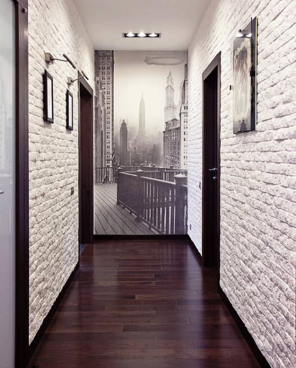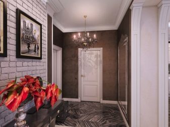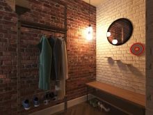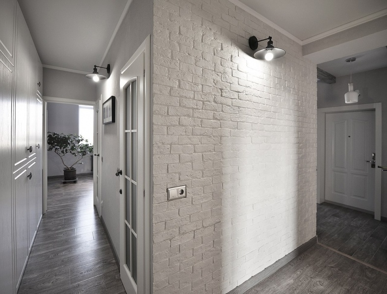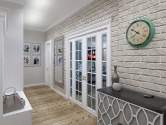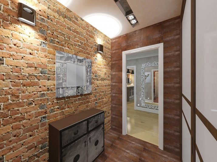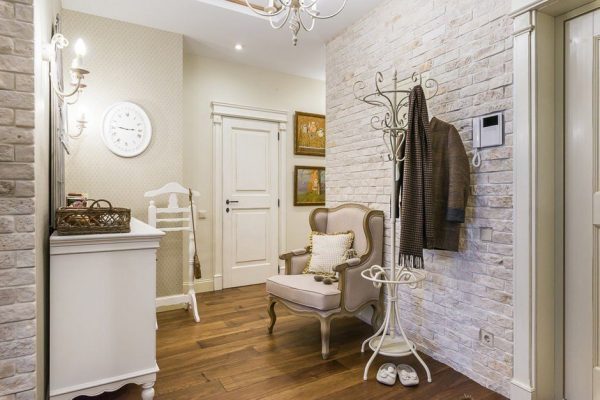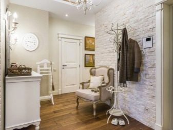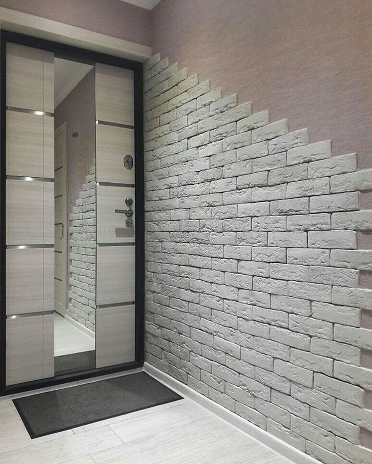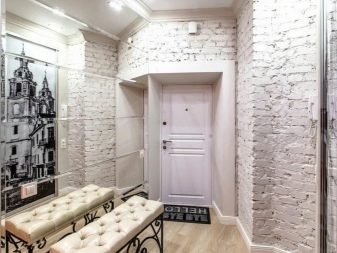L'ingresso è la primissima stanza interna in cui gli ospiti entrano nell'appartamento. Ecco perché l'uso di finti mattoni nel corridoio è considerato una soluzione efficace e ragionevole.