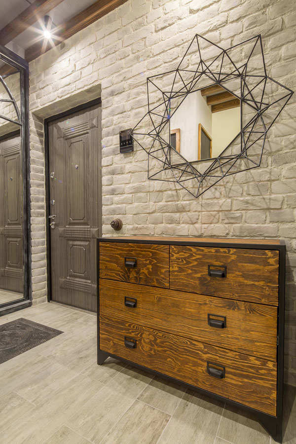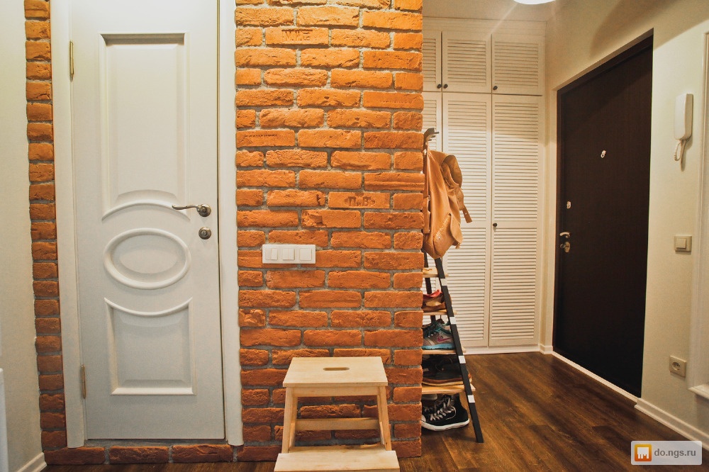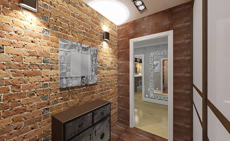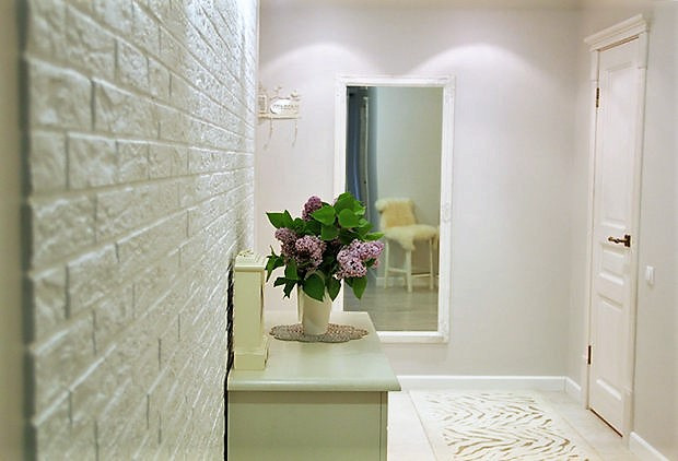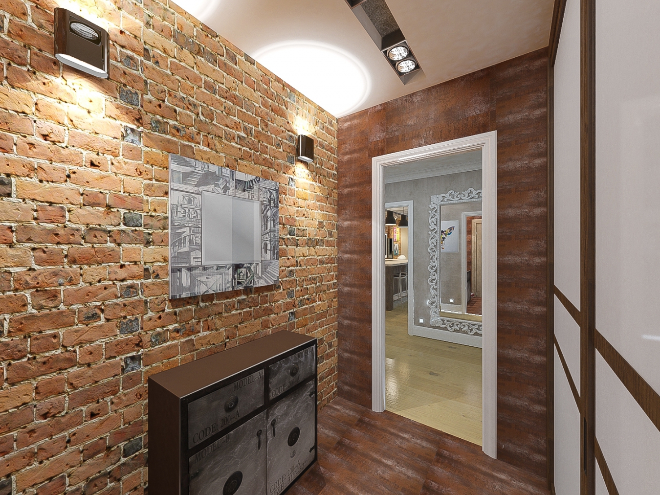 L'ingresso è la primissima stanza interna in cui gli ospiti entrano nell'appartamento. Ecco perché l'uso di finti mattoni nel corridoio è considerato una soluzione efficace e ragionevole.