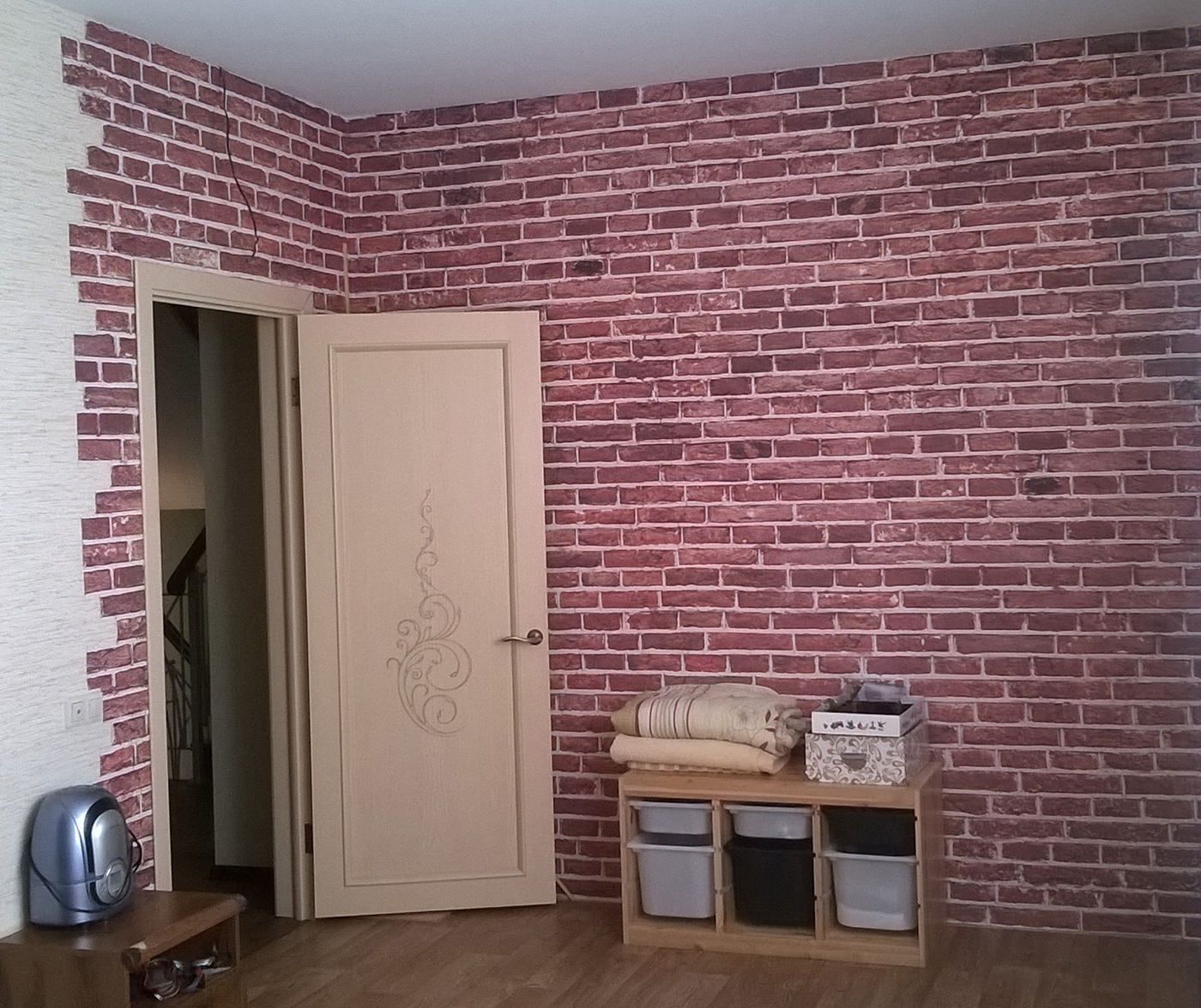 Quando si combinano più trame, la muratura è solitamente limitata a una parete e la carta da parati è incollata alle altre tre. Puoi anche usare combinazioni combinate.