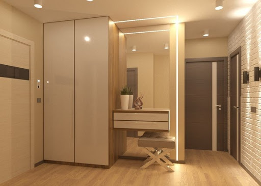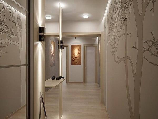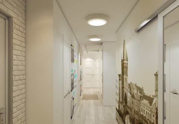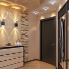 - In un corridoio senza luce naturale è necessario dare la preferenza al rivestimento di colori chiari. Riflettendo la luce degli apparecchi di illuminazione, aggiungerà ulteriore luminosità e comfort alla stanza.