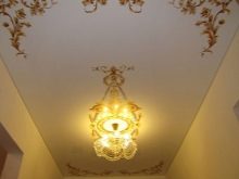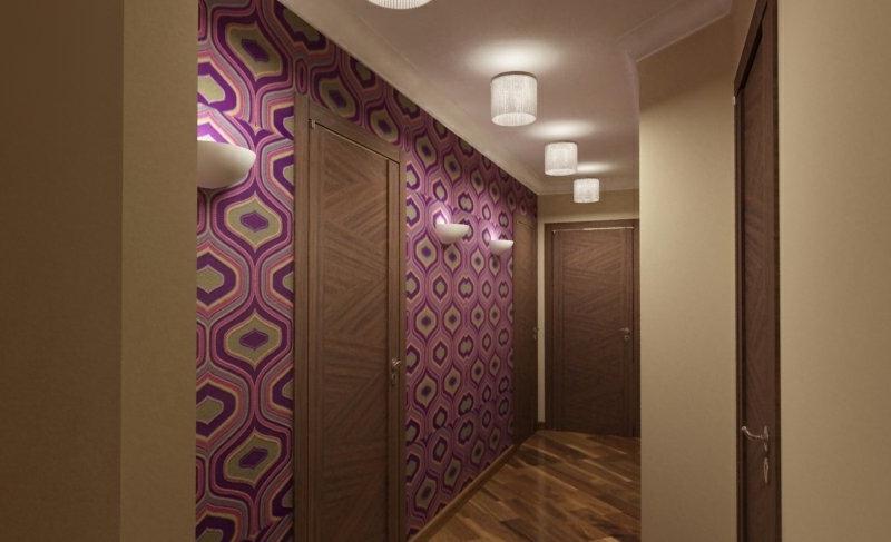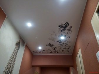 Non vale la pena scegliere un disegno che si adatti all'intero soffitto nel corridoio. Una stampa nell'angolo della tela o un ornamento attorno al perimetro sembrerà più appropriato.