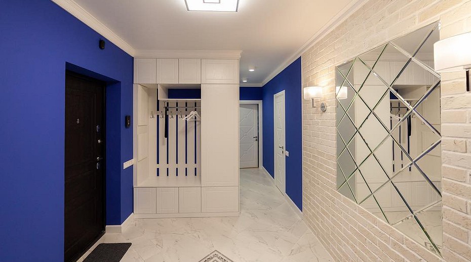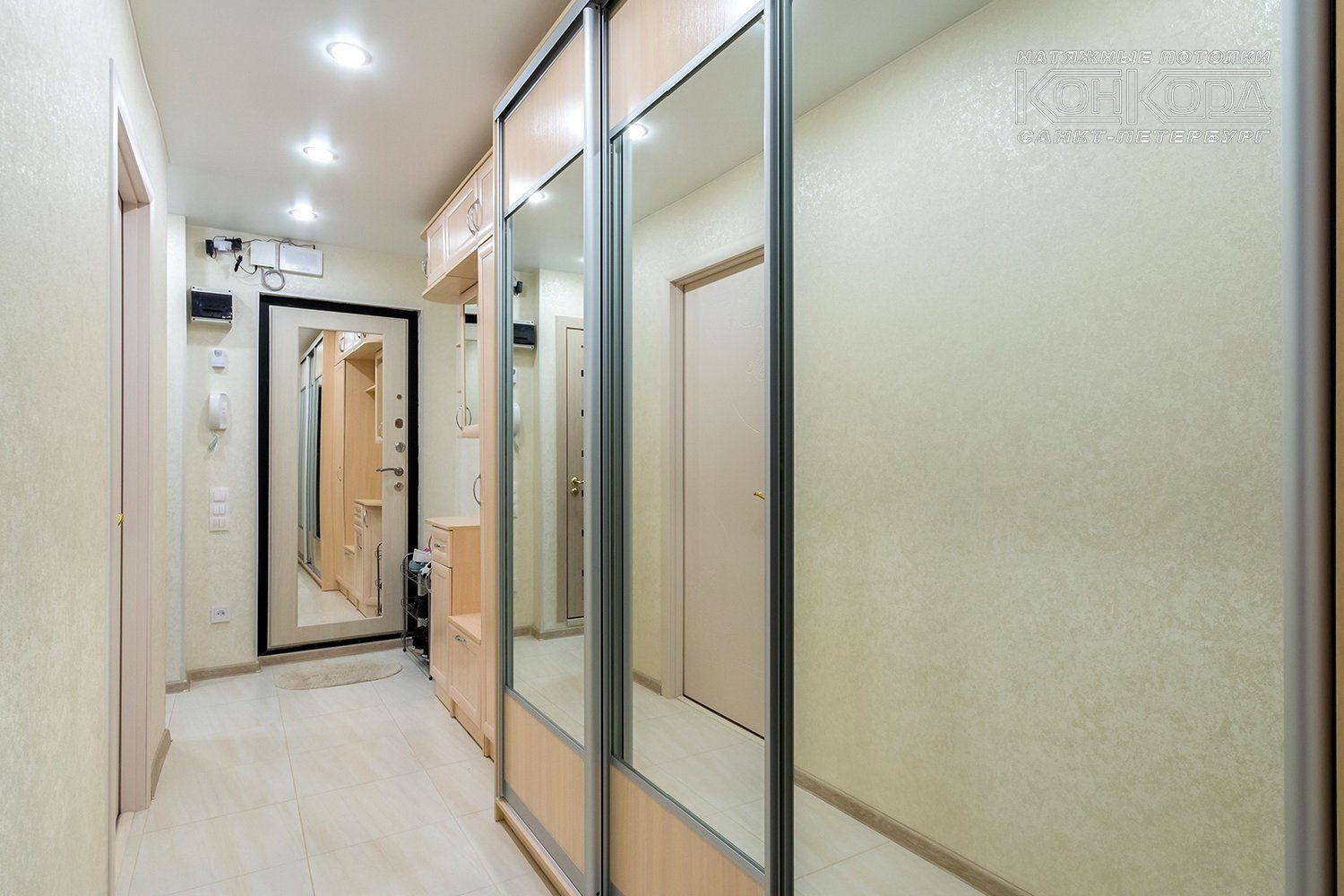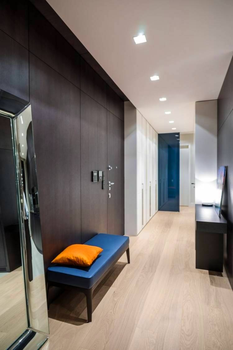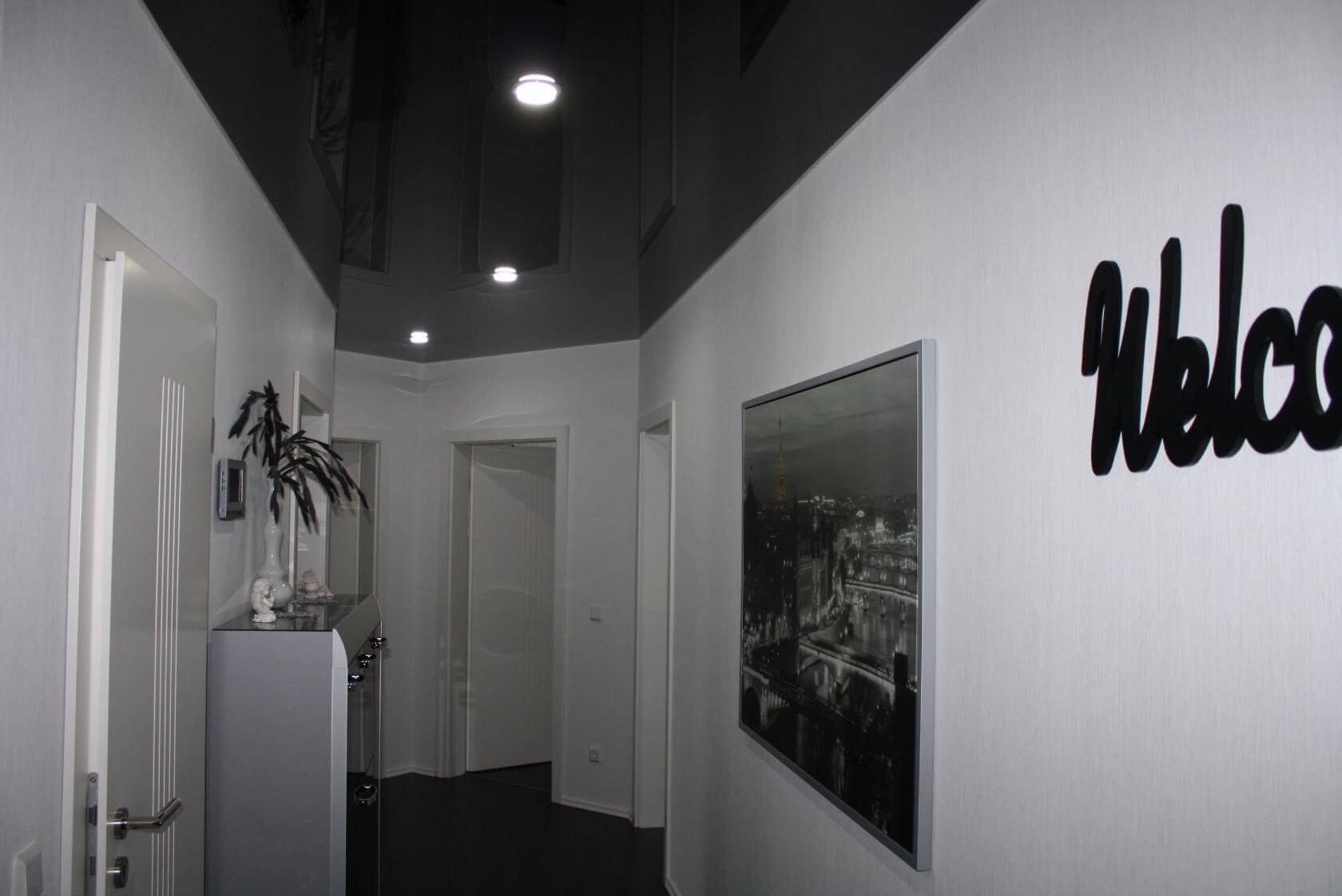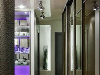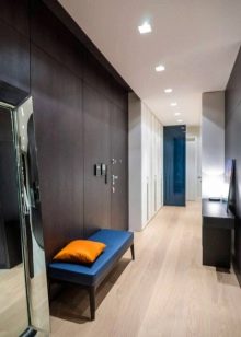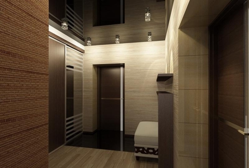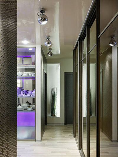 - In un piccolo corridoio dal soffitto basso un soffitto realizzato con un materiale con proprietà riflettenti ha un aspetto migliore, ad esempio un film in PVC lucido o a specchio.