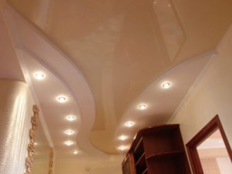 Per la costruzione di un tale soffitto teso, è necessario un corridoio sufficientemente ampio: una sala in un cottage o in un appartamento d'élite.