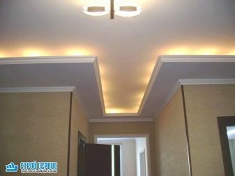 I modelli di soffitti a forma di L o T sembrano insoliti nei corridoi di appartamenti progettati individualmente con una o due nicchie. Le lame elastiche ti consentono di realizzare questo disegno senza unire le cuciture.