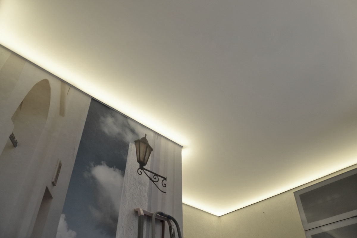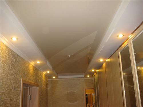 Per i soffitti del corridoio con una larghezza non superiore a 3,3 m (larghezza massima del rotolo), è l'ideale, poiché consente di montare il soffitto, senza cuciture e giunti della tela.