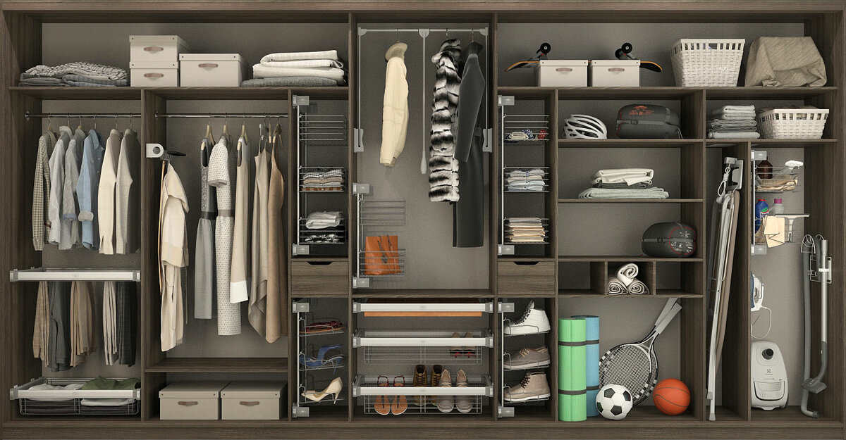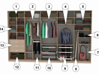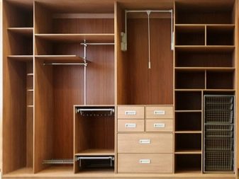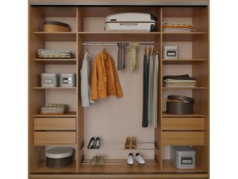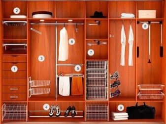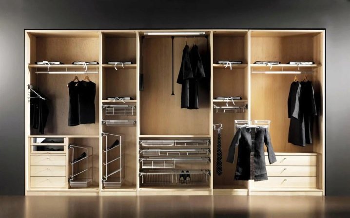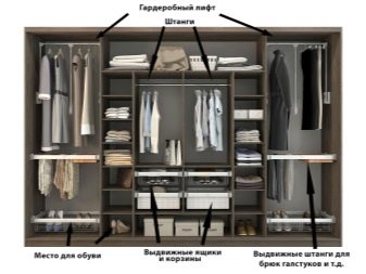 L'attrezzatura di base degli armadi scorrevoli, in particolare quelli economici, è per lo più piuttosto modesta: barre ordinarie, scaffali, diversi ganci, a volte c'è una scarpiera. Se stai progettando il cabinet da solo o è possibile montare dispositivi aggiuntivi al suo interno, dovresti pensare attentamente a cosa potrebbe tornare utile.