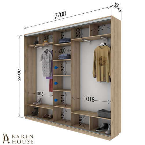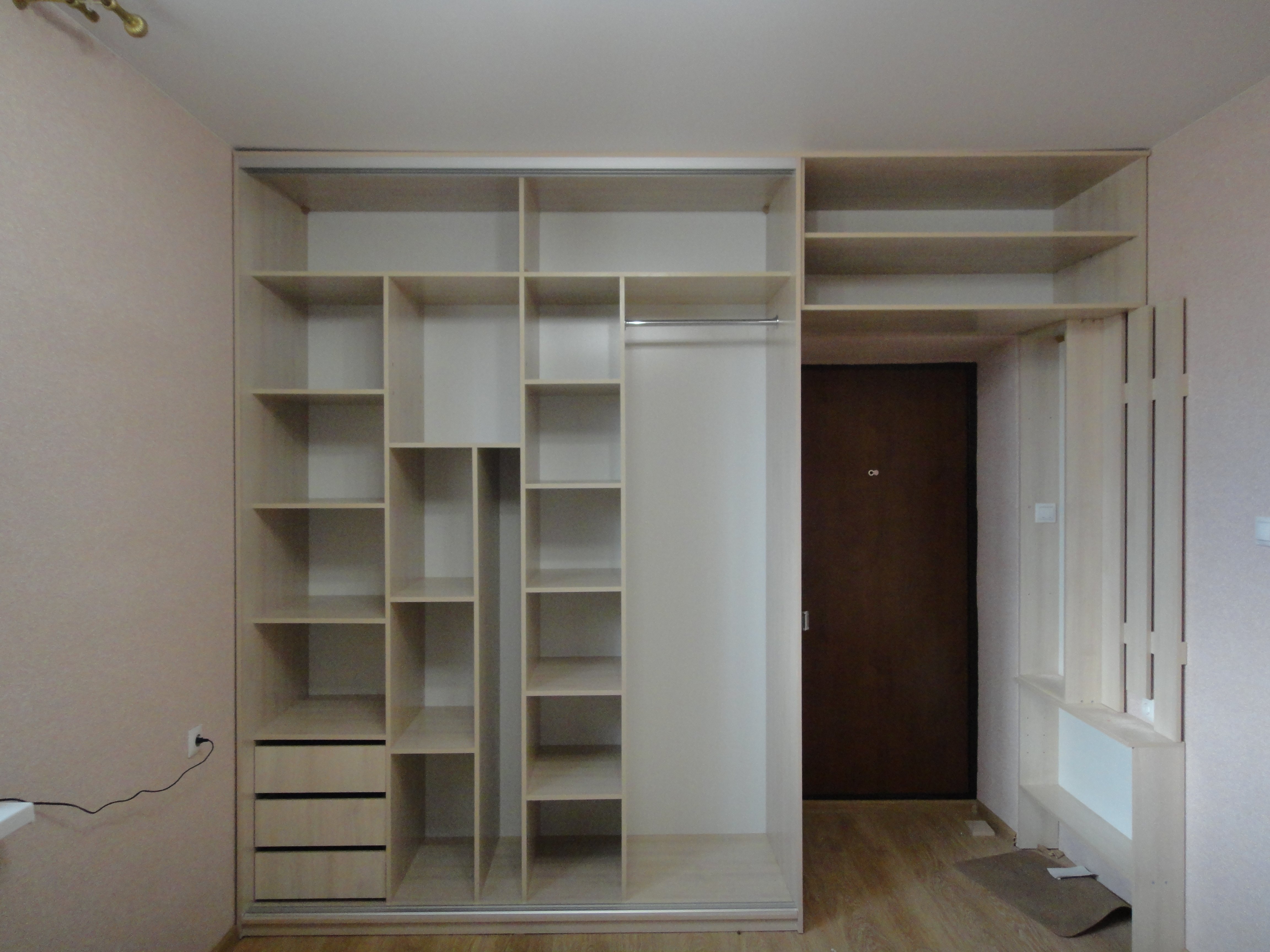 - lato destro (93 cm): ripiano in alto (34 cm), scomparto per il bar (altezza - 1,6 m), spazio rimanente in basso - scomparto per scarpe.