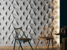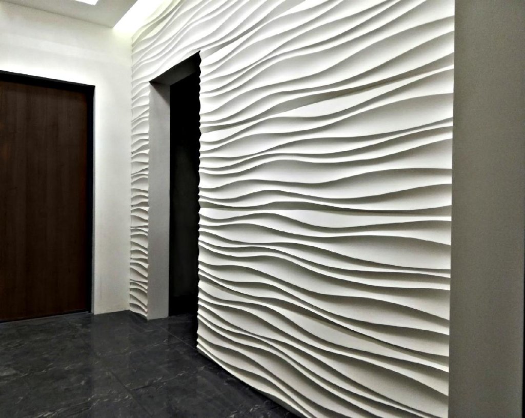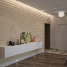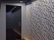 L'acquisto di pannelli 3D è l'opzione migliore per un corridoio spazioso. Attirano l'attenzione e sorprendono gli ospiti, ma esteriormente restringono leggermente la stanza. I professionisti consigliano un motivo convesso orizzontale in tonalità tenui per espandere visivamente lo spazio e rendere più confortevole il corridoio.