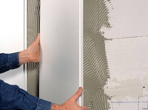 Inoltre, durante l'assemblaggio dei pannelli, vengono installati accessori speciali: vengono utilizzate strisce di partenza e di finitura, una striscia di collegamento, angoli esterni e interni. Grazie al blocco sul pannello, l'aggancio è quasi senza soluzione di continuità. Se il telaio è solido, i pannelli possono essere incollati su una superficie piana della parete utilizzando la colla di montaggio.