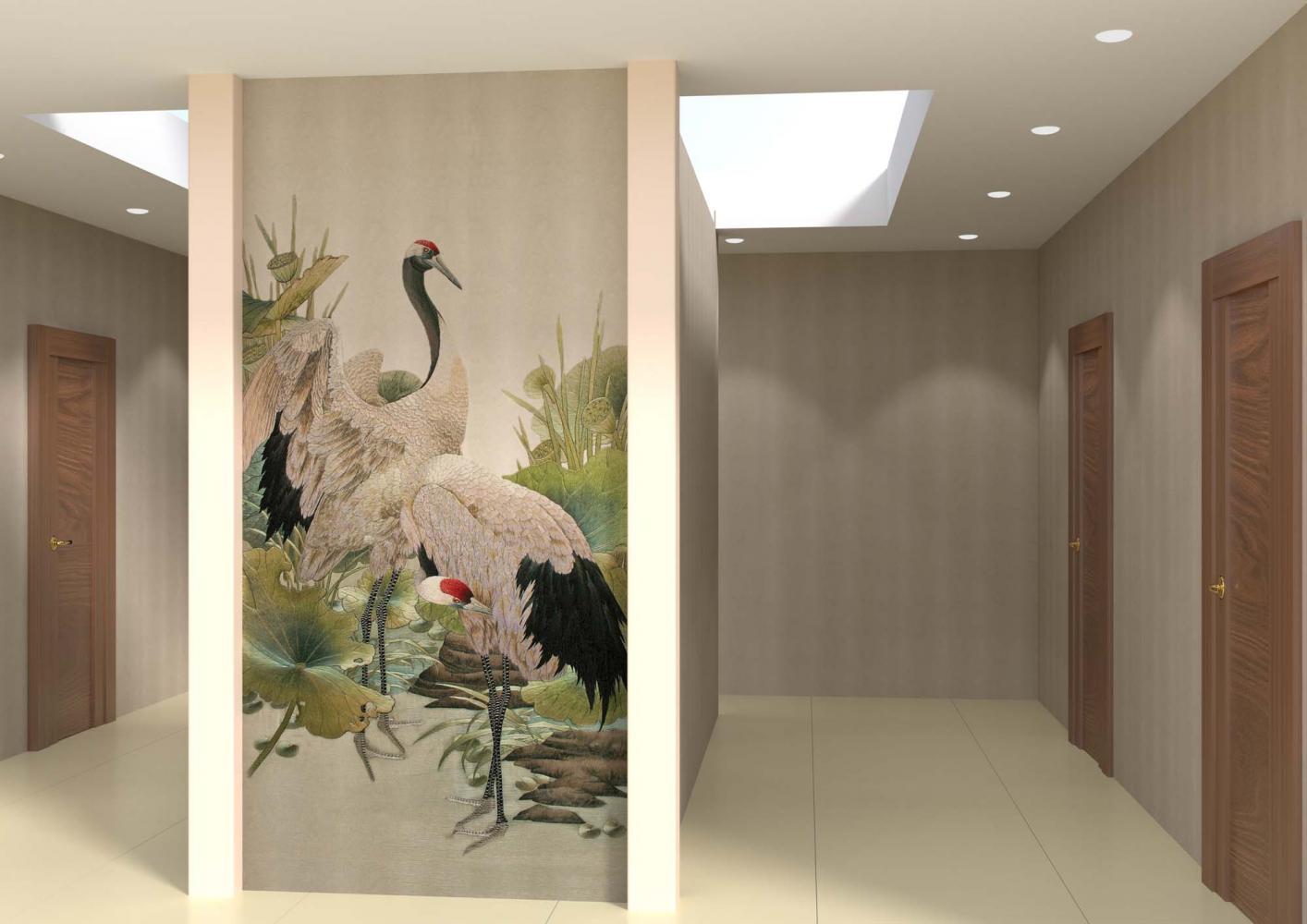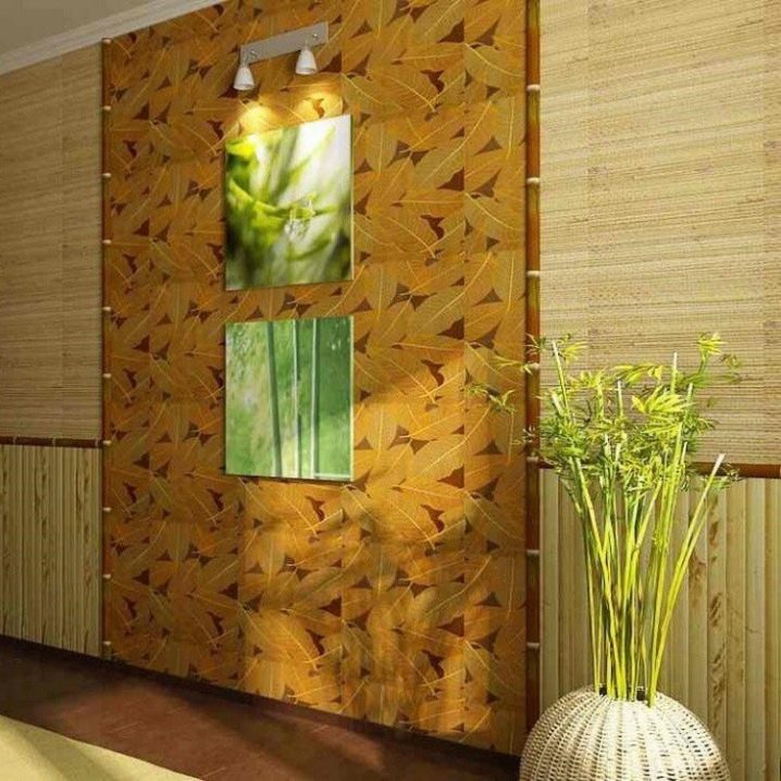 Le tele di bambù non saranno apprezzate da tutti, ma tali pareti originali hanno un effetto calmante sui visitatori di una casa o di un appartamento. È importante tenere conto del fatto che dopo un po 'il disegno può annoiarsi. Per non dover effettuare nuovamente le riparazioni, è necessario posizionare mobili luminosi, quadri o specchi con illuminazione insolita nel corridoio.