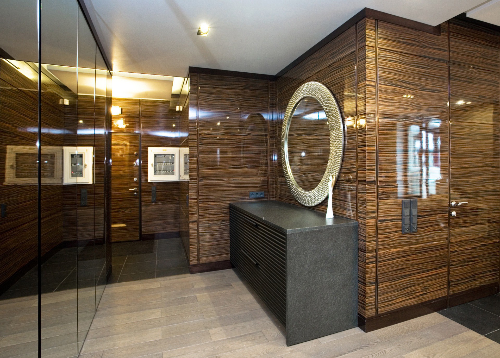 La fibra di legno è una fibra di legno, per la produzione di questo materiale di finitura viene utilizzata l'impiallacciatura di legno pregiato. A causa del costo relativamente basso e della facilità di installazione, puoi completare rapidamente il corridoio da solo senza il coinvolgimento di un aiuto esterno.