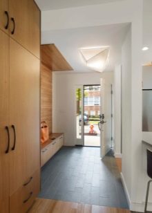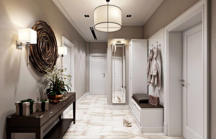 Le plafoniere dovrebbero essere selezionate in base all'altezza dei soffitti nel corridoio... Quindi, i plafoniere sospesi in una stanza bassa possono creare molti disagi per le famiglie. Tali dispositivi possono essere toccati accidentalmente quando si cambiano i vestiti.