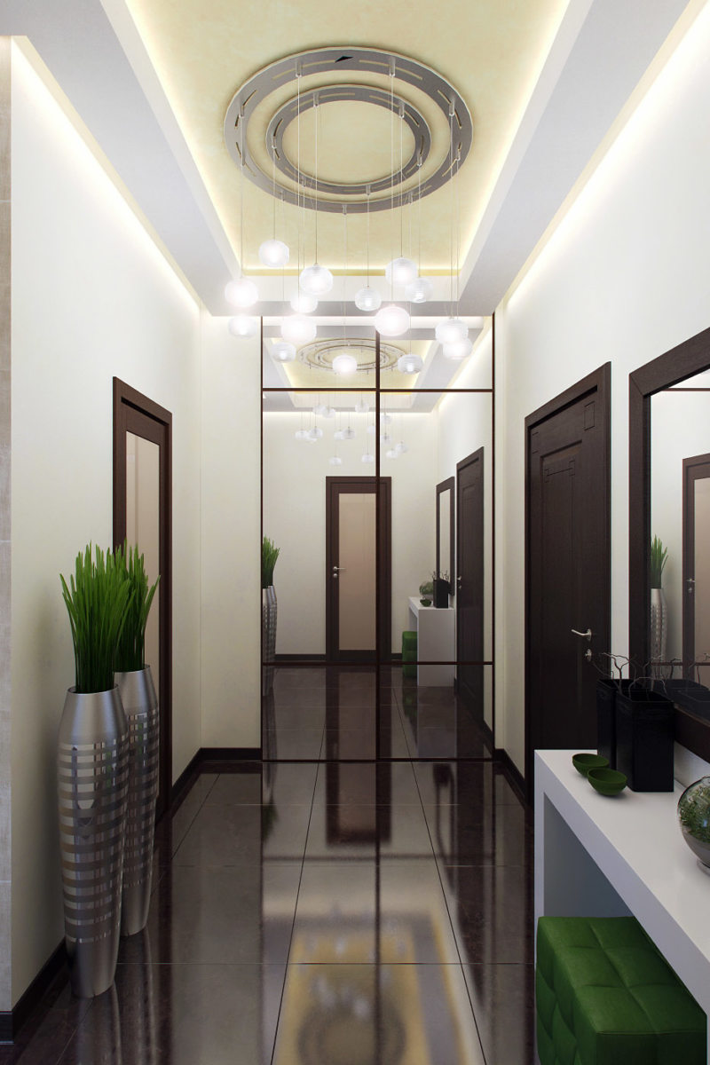 Il design del corridoio apparirà molto più attraente e costoso se installi qui plafoniere estetiche dello stile appropriato. Diamo un'occhiata ad alcuni interessanti esempi di questi ambienti.