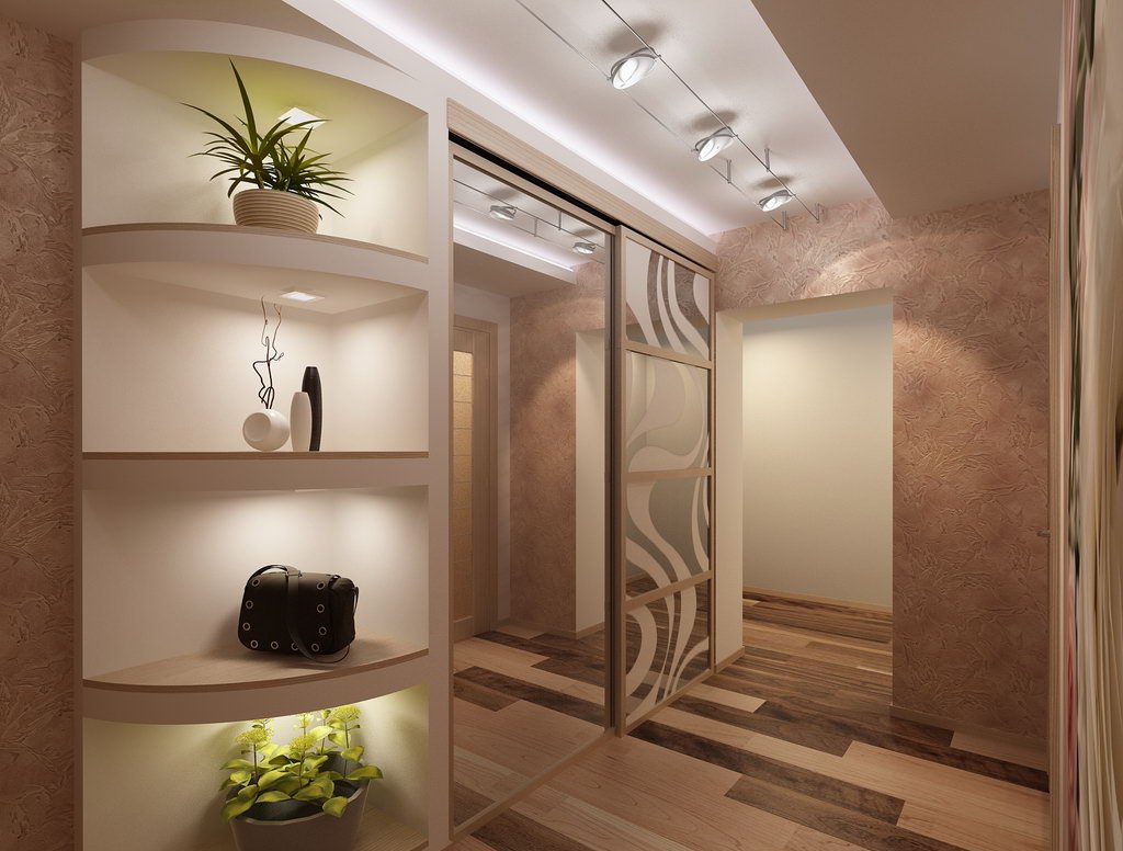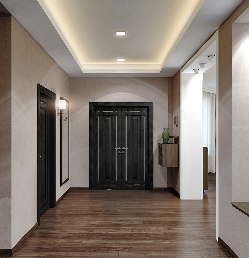 Recentemente, alcuni dei più popolari sono gli apparecchi da incasso, che sono dettaglio dei controsoffitti. Oggi, questi tipi di elettrodomestici si trovano in molti interni di corridoi. Per mezzo di tale luce, è possibile evidenziare determinate zone nel corridoio, enfatizzare i vantaggi, nascondere le carenze.