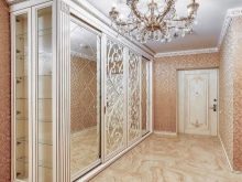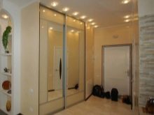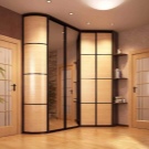 Nel caso in cui il corridoio abbia una forma stretta allungata, è meglio posizionare la struttura lungo il muro. In un corridoio stretto e lungo, è meglio installare armadi da una parete all'altra, decorandoli con specchi.