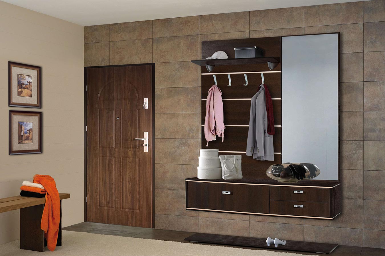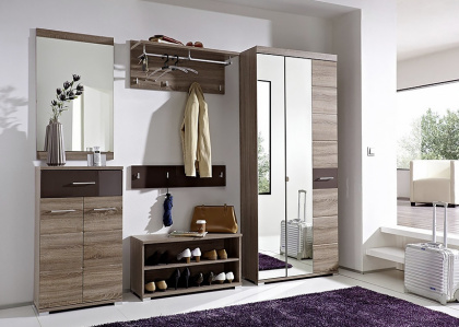 - Gli intenditori di sobrietà elegante apprezzeranno sicuramente i mobili con un tocco di "noce". La presenza di un piccolo specchio e di appendiabiti aperti consentirà di utilizzare il mobile come un elemento pratico e conveniente.
