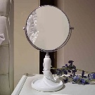 - Da tavolo. Se non è possibile attrezzare una zona spogliatoio separata nel corridoio, è possibile installare un piccolo specchio da tavolo su uno degli scaffali liberi dell'armadio. Occupa pochissimo spazio. Allo stesso tempo, usando un tale specchio, puoi esaminarti da tutti i lati, pettinarti i capelli, raddrizzare i vestiti.
