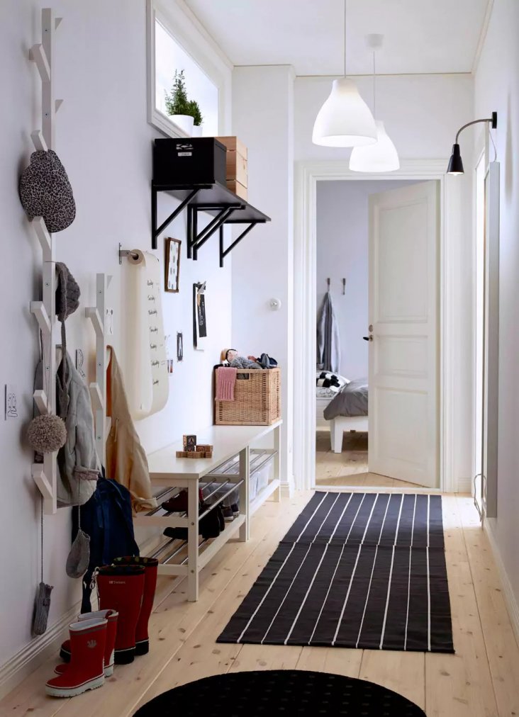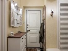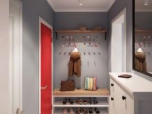 In un piccolo corridoio stretto, puoi sistemare ulteriori mobili. Questo può essere un grazioso portaombrelli, uno scaffale pulito o anche un piccolo armadietto per riporre i cosmetici.