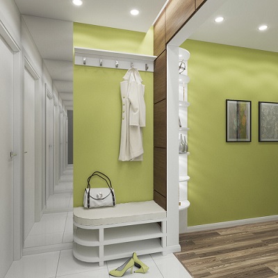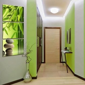 - Verde. Nei piccoli corridoi, si consiglia di utilizzare tonalità chiare di verde. Un bellissimo sfondo per i mobili saranno i toni del pistacchio, dell'oliva o del verde chiaro.