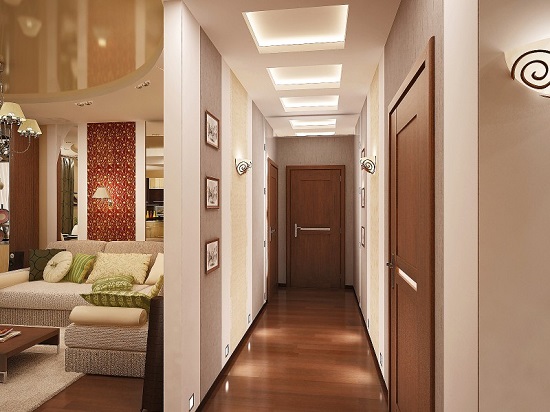 Inoltre, tali stanze hanno i loro vantaggi. Considerando un progetto con un corridoio stretto, puoi prestare attenzione al fatto che a causa delle sue piccole dimensioni, il resto delle stanze è più spazioso. Inoltre, vale la pena considerare il fatto che si spendono meno soldi per finire un piccolo corridoio. Inoltre, non è necessario acquistare un numero elevato di lampade per una stanza piccola. Quando organizzi una stanza, puoi cavartela con una piccola lampada e diverse altre.