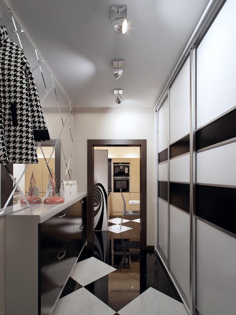 Per decorare un piccolo corridoio stretto, puoi usare diversi tipi di specchi.