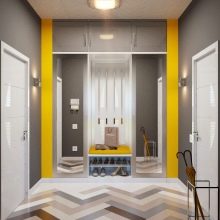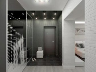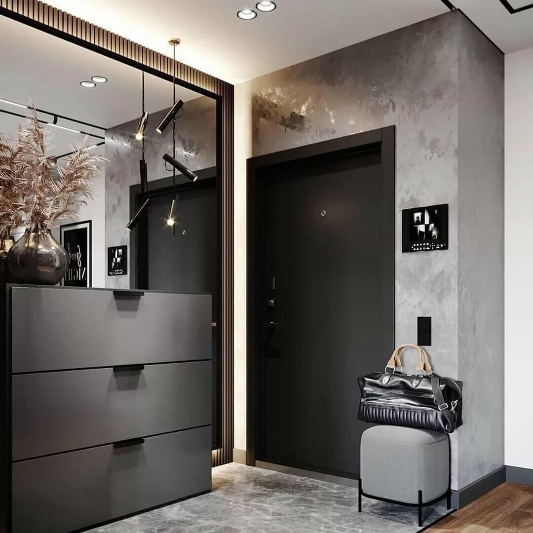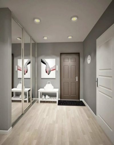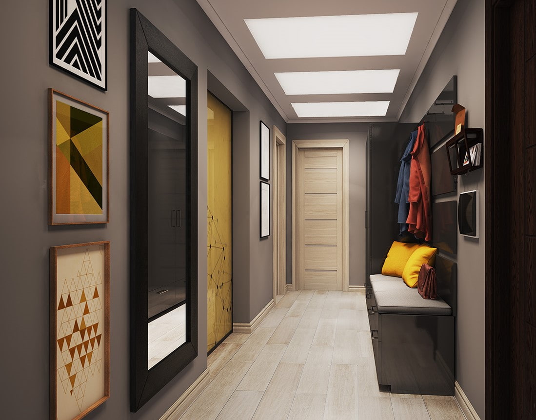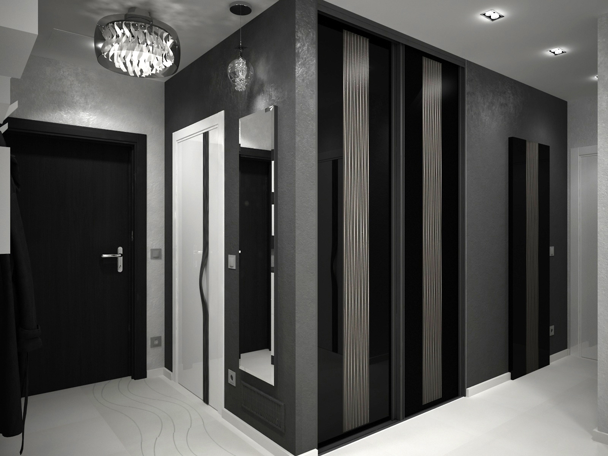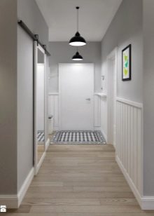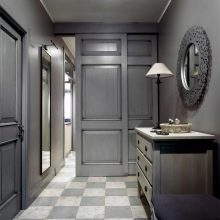 - sfumature di grigio chiare e contrastanti espandono lo spazio, rendendolo ideale per corridoi stretti e piccoli corridoi.