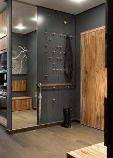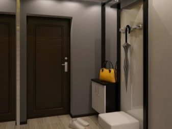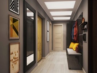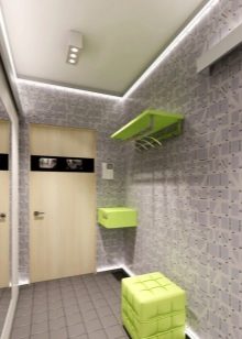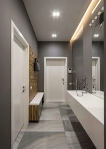 Particolare attenzione è rivolta all'illuminazione. Se il corridoio è realizzato in tonalità scure di grigio, un'illuminazione insufficiente lo trasformerà in una stanza "seminterrato". Si consiglia di utilizzare una luce diffusa.