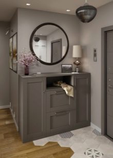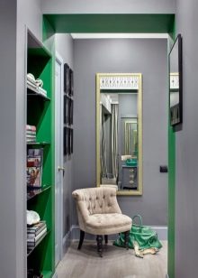 Allo stesso tempo, il grigio può diluirsi. Ad esempio, se un corridoio verde ha solo pareti grigie come sfondo, l'interno non sarà nemmeno grigio. O un corridoio rosa ha carta da parati grigio-rosa polverosa e alcuni elementi decorativi grigio scuro.