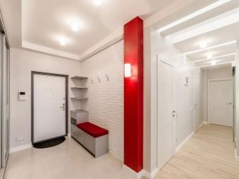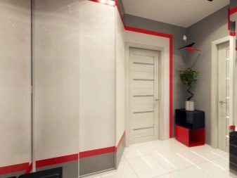 Inoltre, i colori vivaci ti consentono di regolare perfettamente il layout della stanza e ricreare anche le idee di design più audaci. Ad esempio, se la parete di fondo è dipinta di rosso e il resto di grigio, il corridoio stretto diventerà visivamente più ampio. Puoi dipingere colonne o porte sporgenti in un colore brillante, persino nasconderle se le dipingi dello stesso colore del muro. Ad esempio, è così che puoi camuffare la porta del camerino o dell'armadio.