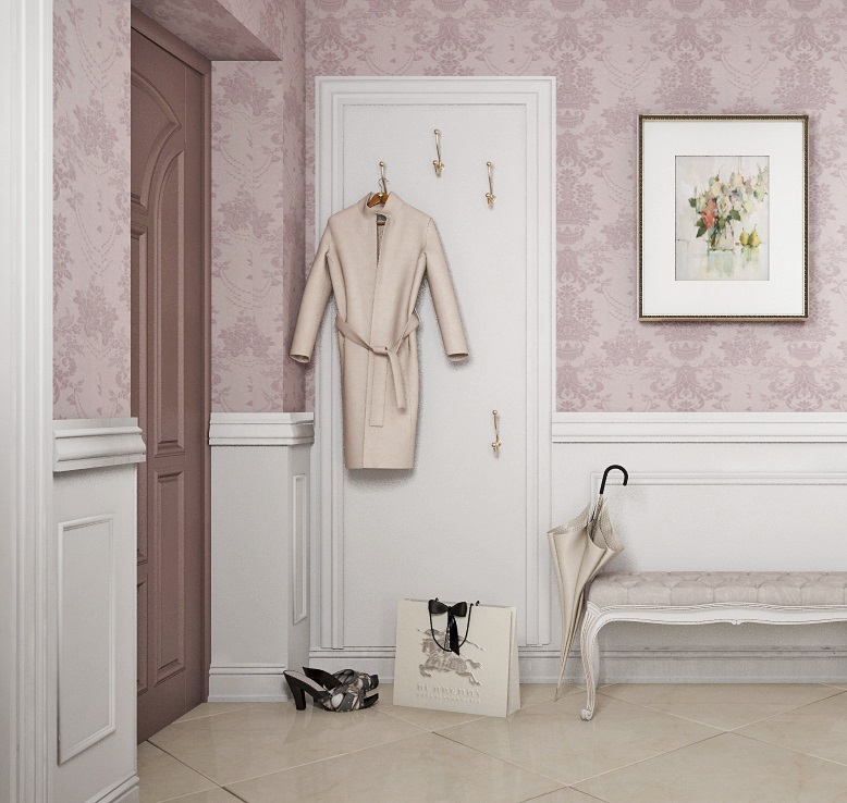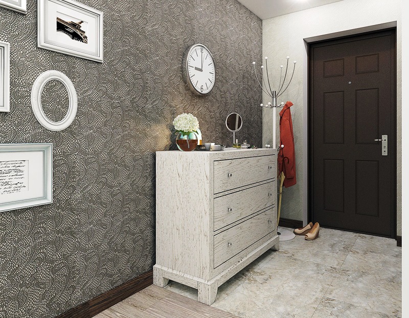È meglio scegliere i materiali più pratici per la decorazione stessa. Ad esempio, la carta da parati in vinile resiste alle gocce d'acqua di una giacca o di un ombrello. Sono più facili da pulire rispetto a quelli di carta.
