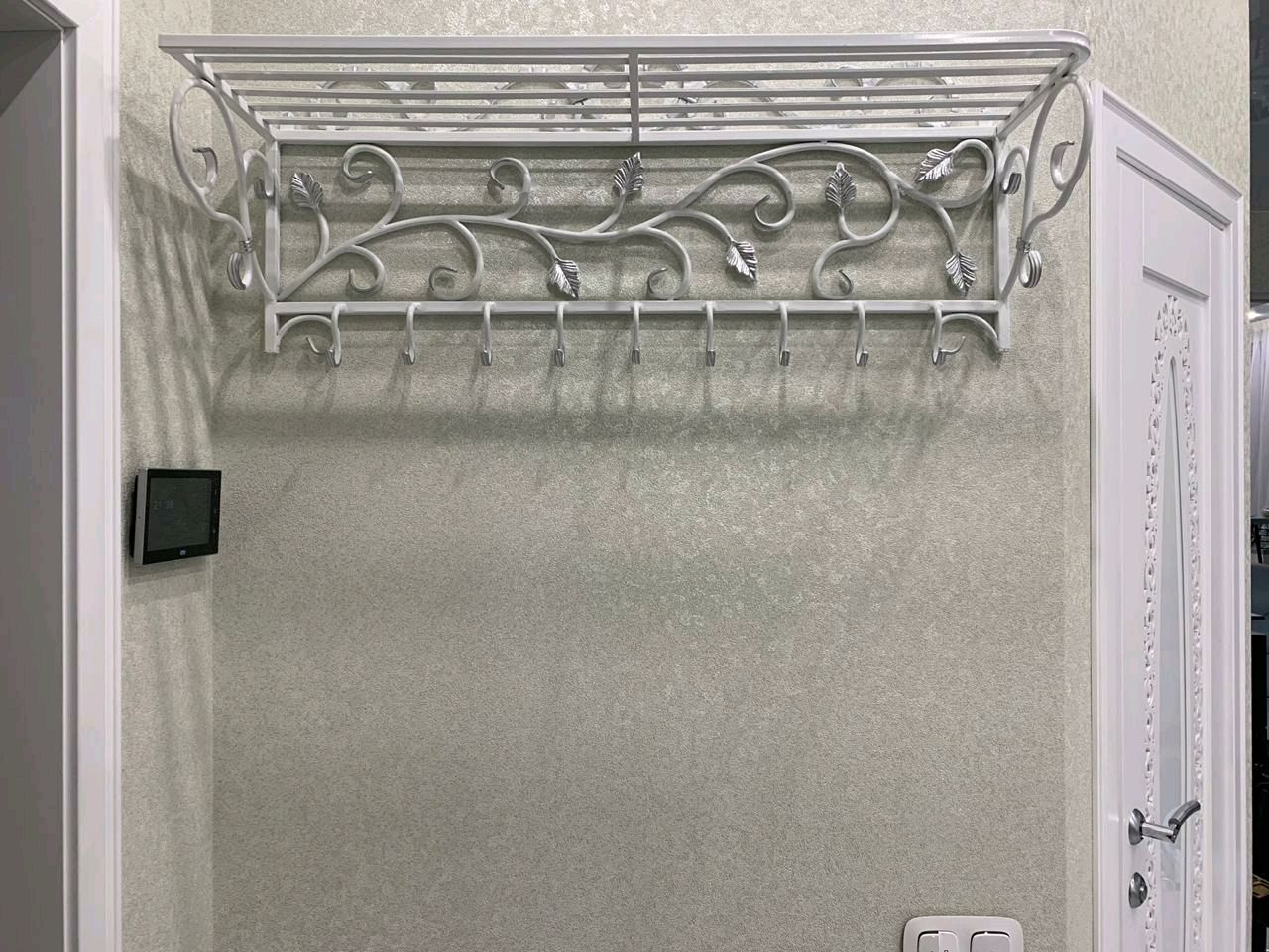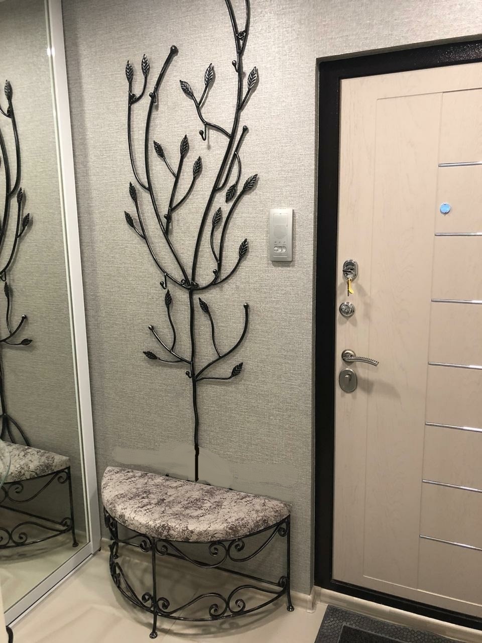 I mobili forgiati scuri e gli stessi elementi di design stanno benissimo su uno sfondo chiaro. Questo può essere un appendiabiti, gambe del tavolo, panche, un lampadario o un'applique. Il loro uso conferisce ariosità e grazia all'interno.