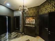 - Per quanto riguarda il design degli interni nello stile dei classici moderni, qui consigliamo assolutamente le carte da parati di colore scuro come rivestimenti per pareti. Possono essere a righe o con monogrammi diversi. Per enfatizzare tutta la raffinatezza degli interni, la carta da parati non può essere incollata completamente, ma su metà del muro, nella parte inferiore di esso, è possibile installare pannelli a parete. Un tale interno completerà perfettamente il pavimento in gres porcellanato o pietra naturale in colori chiari. E il soffitto a specchio enfatizzerà l'integrità degli interni classici.