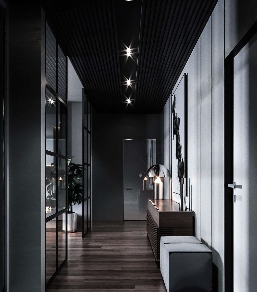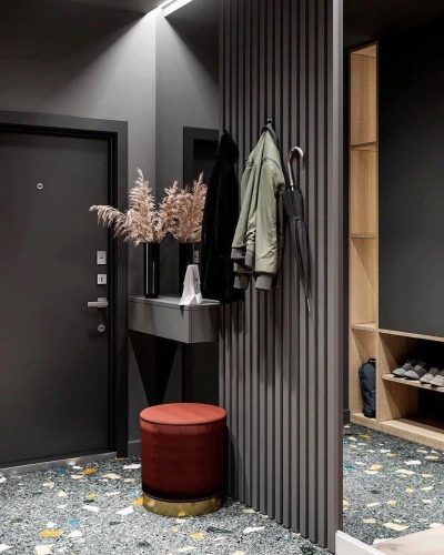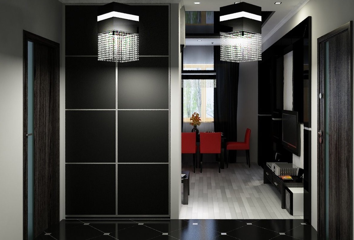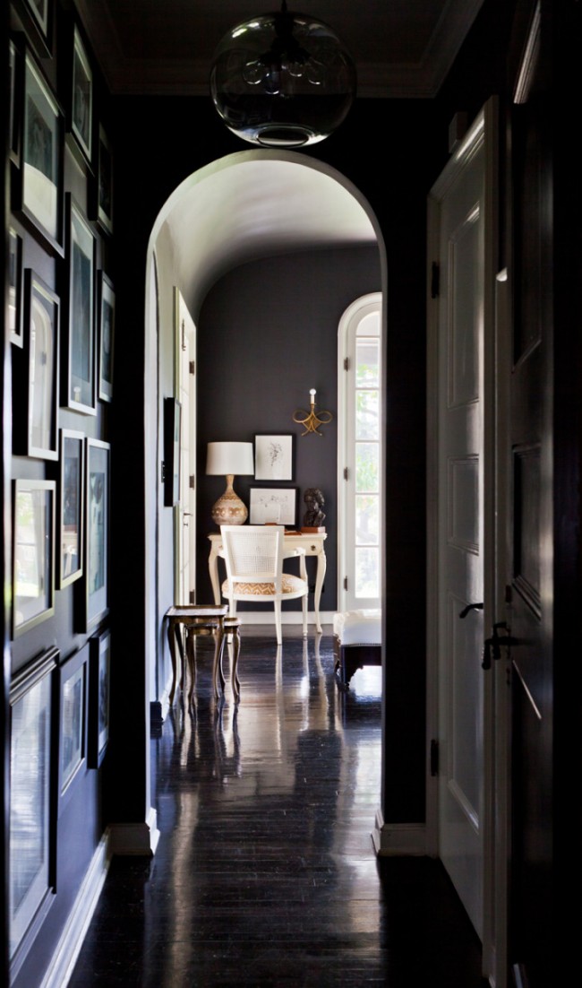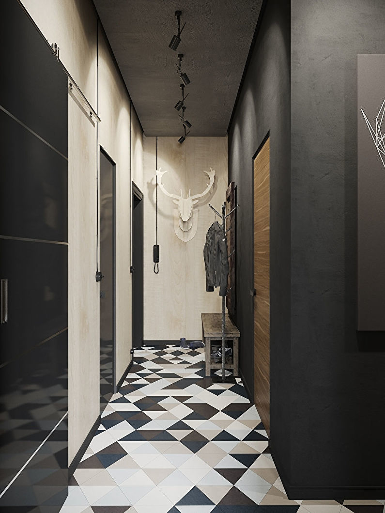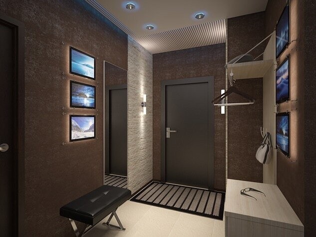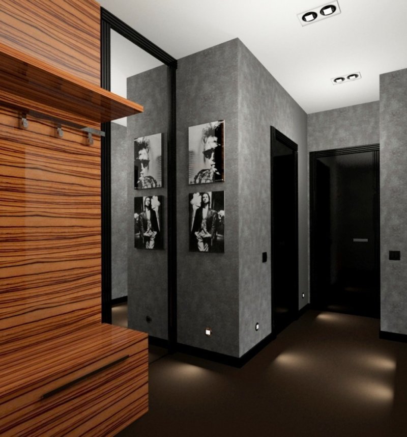Facciamo conoscenza con le soluzioni interne più interessanti nei corridoi, il cui design è realizzato in colori scuri.
