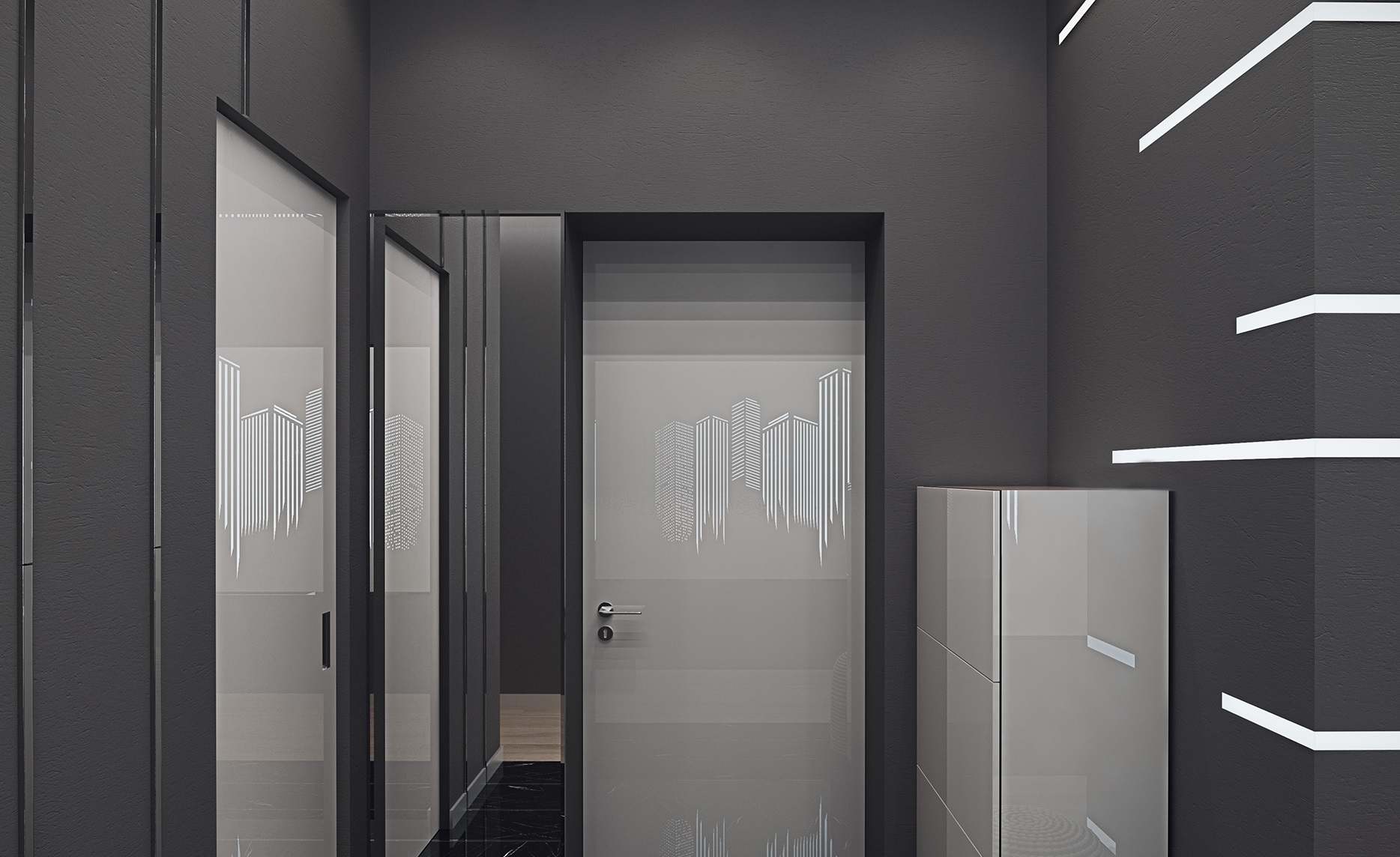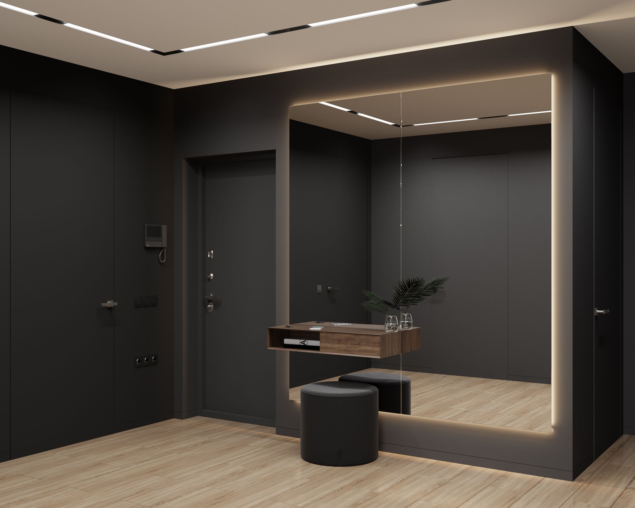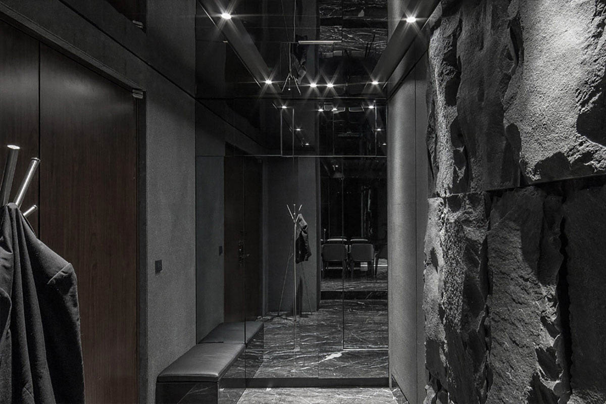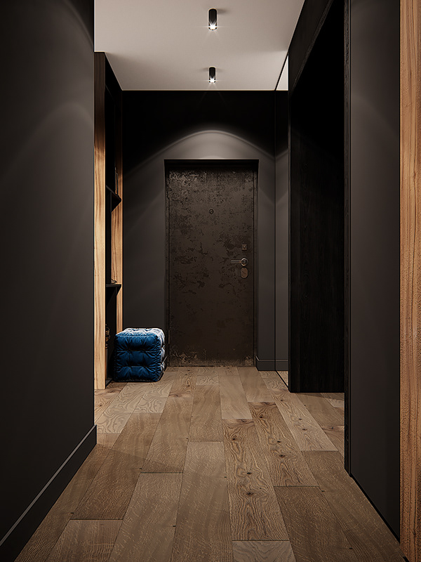 Facciamo conoscenza con le soluzioni interne più interessanti nei corridoi, il cui design è realizzato in colori scuri.