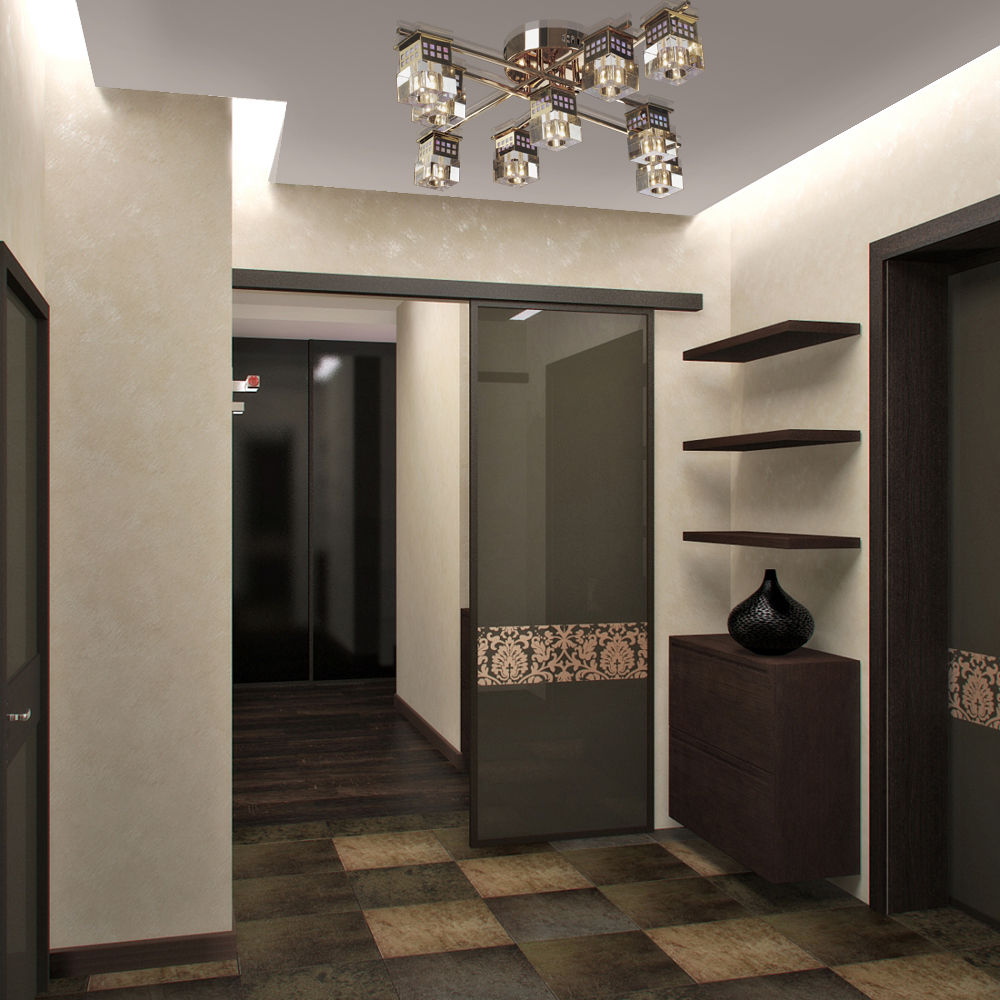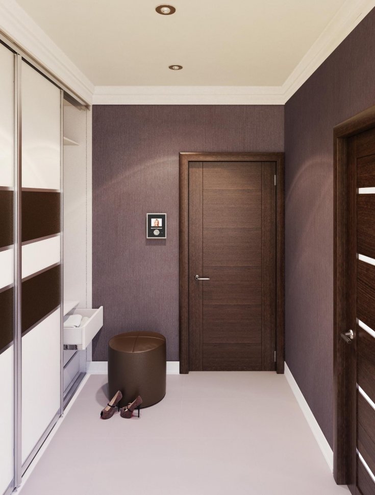 Quindi, per rendere confortevole il soggiorno nel corridoio buio, non bisogna esagerare con le tonalità scure, ma abbinarle abilmente con i colori chiari... Se le pareti sono scure, il soffitto e il pavimento possono essere chiari e se le pareti sono di una tonalità calma, ad esempio marrone, il pavimento può essere oscurato.
