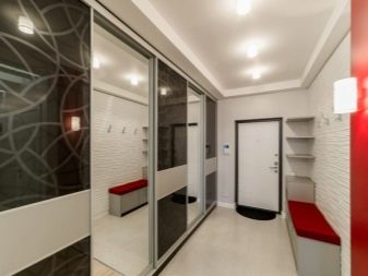 Per evitare che il corridoio diventi troppo angusto, l'armadio dovrebbe avere superfici riflettenti. Ad esempio, le porte a specchio espanderanno visivamente l'area di fronte a loro due volte. Glossy - sono meno riflettenti della stanza, ma sono anche in grado di giocare con lo spazio e la luce, rendendo l'ambiente luminoso e arioso.