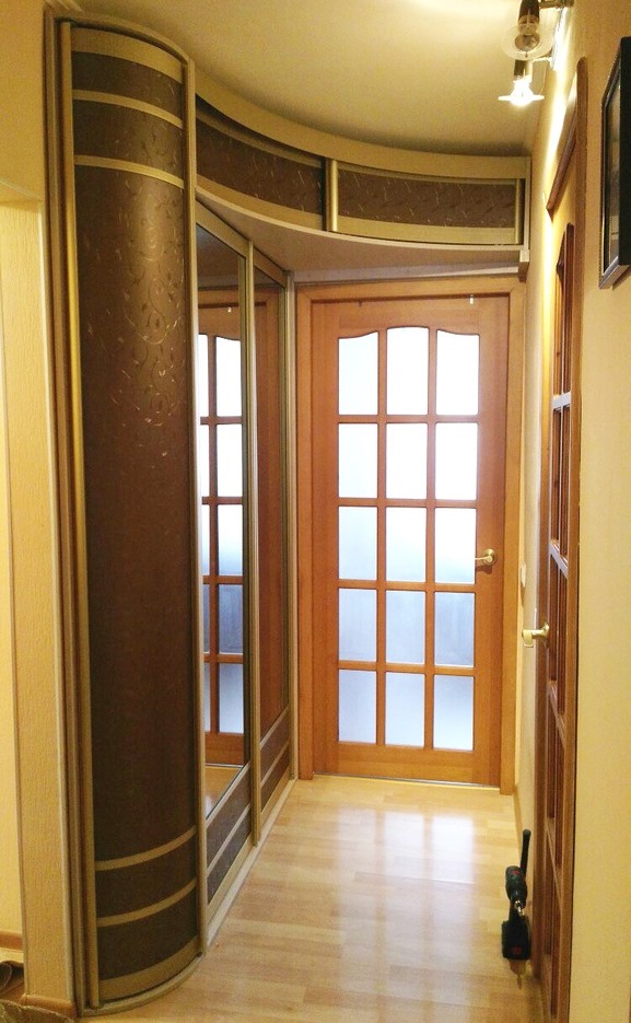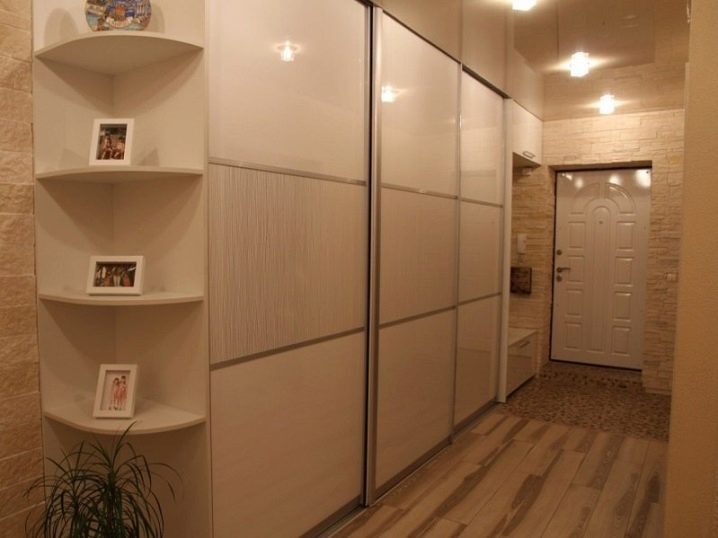 Il design ha porte scorrevoli che coprono una nicchia o uno spazio da parete a parete. Per un armadio a muro, non è necessario armeggiare con il pavimento, il soffitto e il rivestimento interno. Ripiani e aste possono essere fissati direttamente alle pareti della nicchia. Con un layout stretto, una tale struttura può essere installata alla fine del corridoio se finisce in un vicolo cieco.